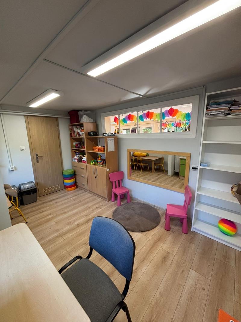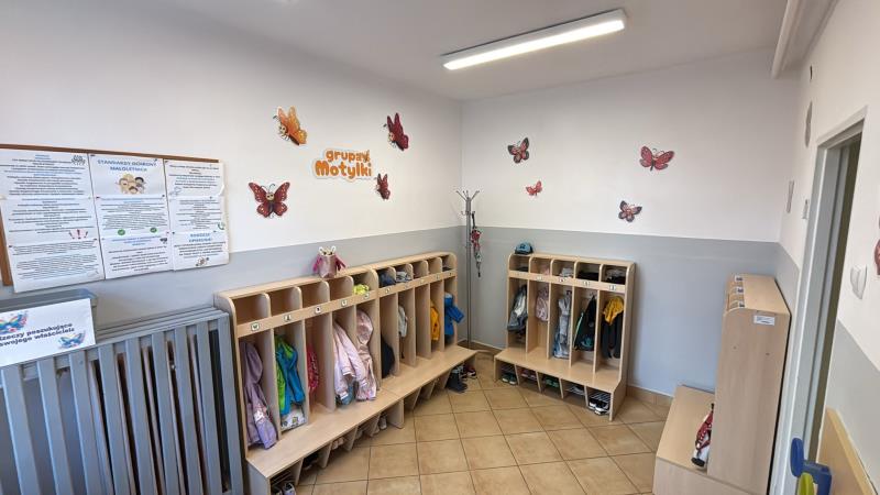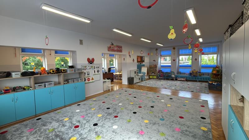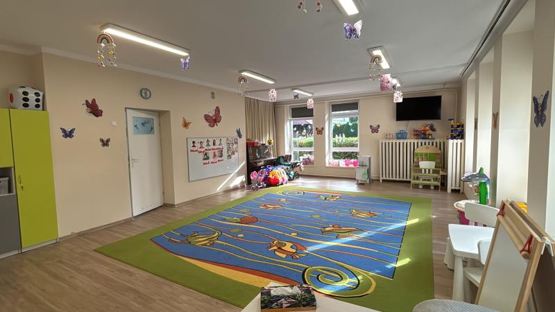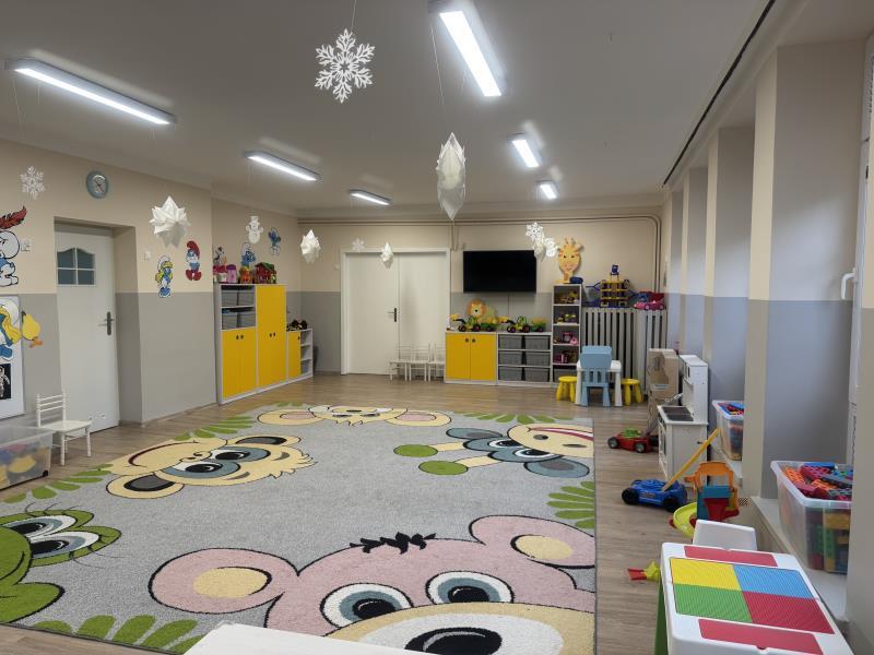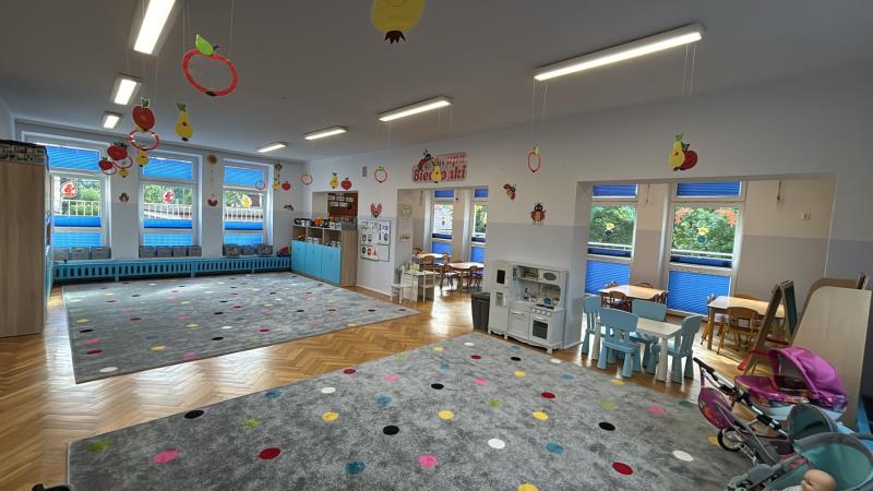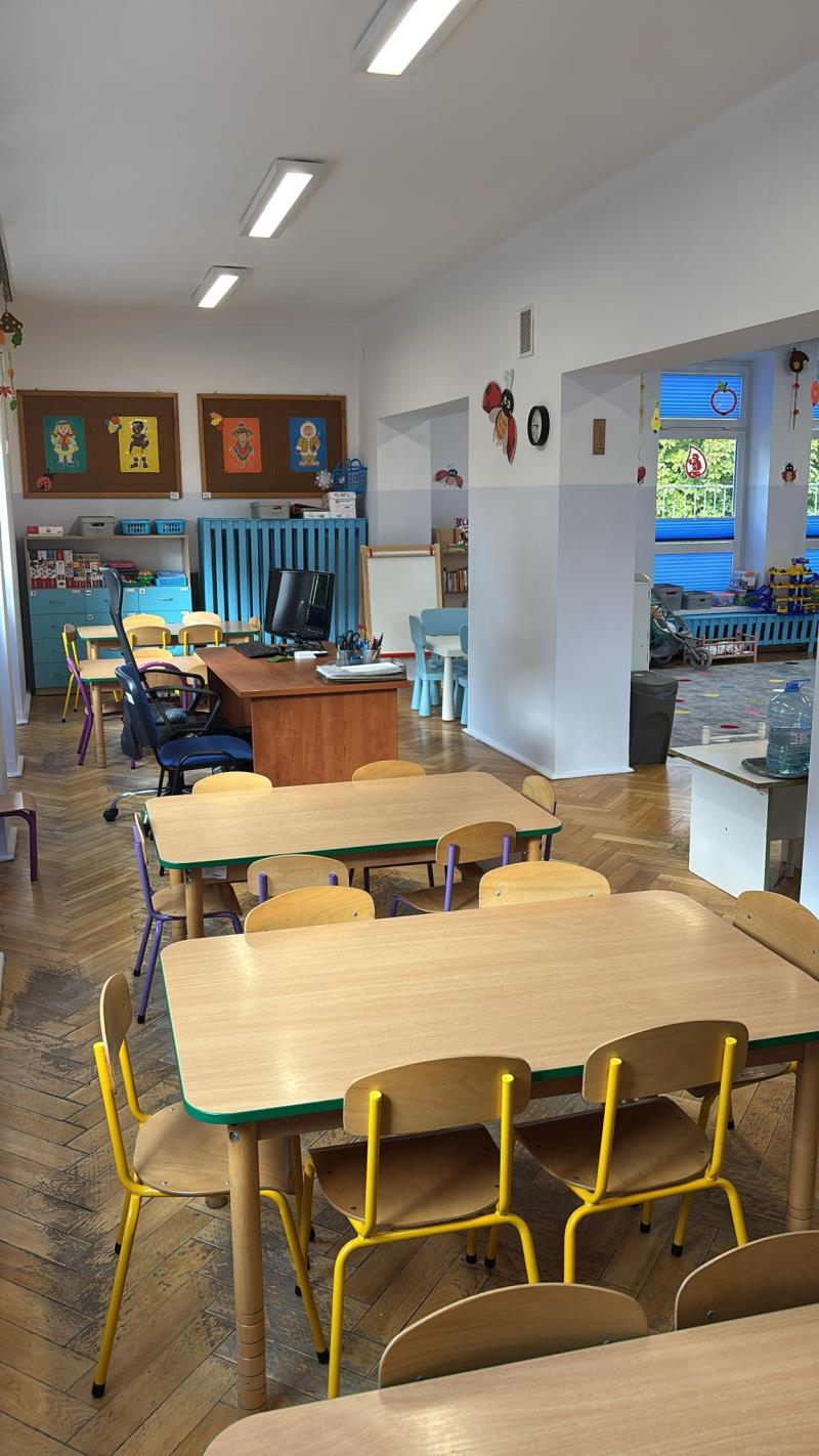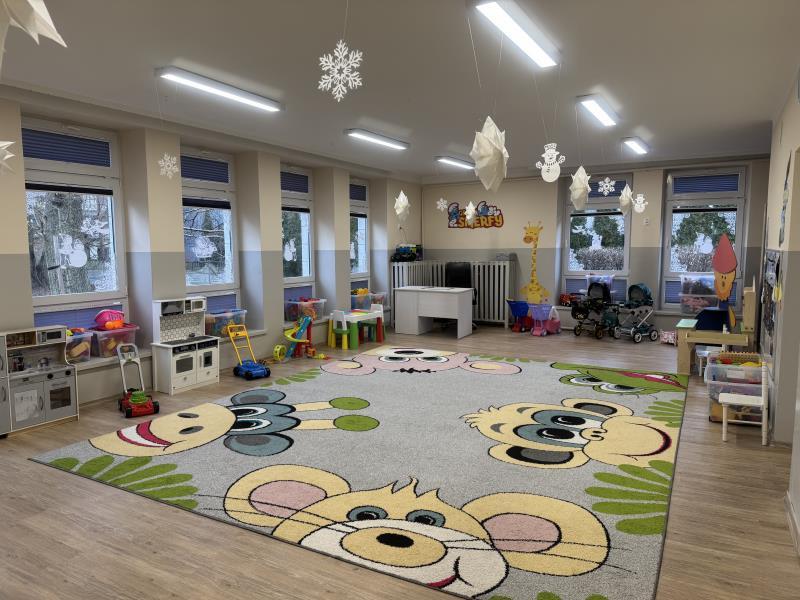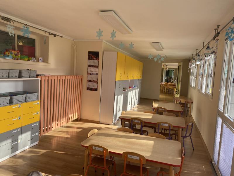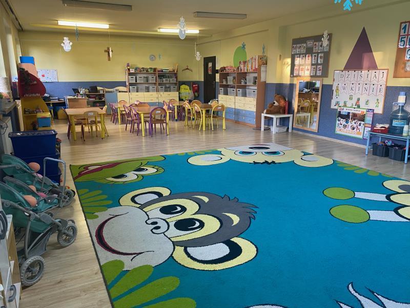 Każda grupa posiada osobne wejście, własną szatnię, jadalnię oraz salę do zajęć dydaktycznych z łazienką.