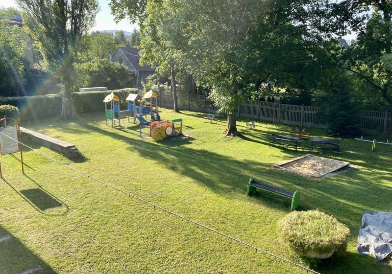 Nasze Przedszkole posiada duży, bezpieczny ogród wyposażony w nowoczesne urządzenia do zabaw dla dzieci, co sprzyja prowadzeniu zajęć dydaktycznych oraz zabawą ruchowym na świeżym powietrzu.