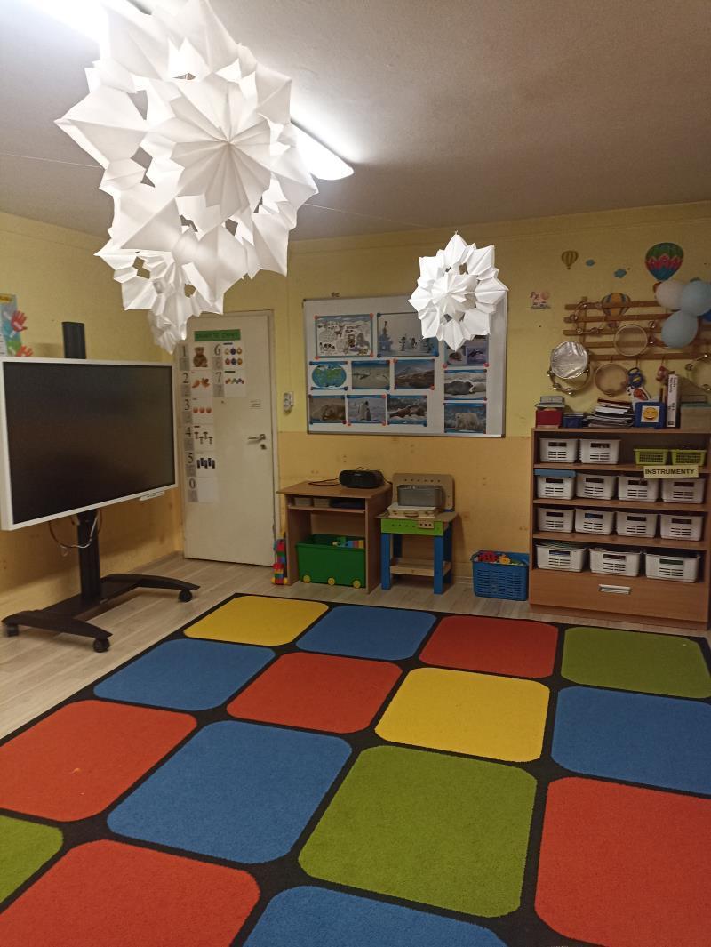 Przedszkole znajdują się w centrum miasta w sąsiedztwie Ratusza i Urzędu Miejskiego w bloku osiedla Śródmiejskiego. Brama główna do Przedszkola znajduje się od strony osiedla i prowadzi do wejścia przez piękny ogród ogrodzony kolorowym płotem , wyposażony w nowoczesne, kolorowe i bezpieczne sprzęty ogrodowe oraz alejki do spacerów i zabaw. Wszystko to sprzyja częstemu i bezpiecznemu przebywaniu dzieci na świeżym powietrzu. Wyremontowane pomieszczenia Przedszkola są jasne, kolorowe, wyposażone w dużą ilość zieleni, sprzętów i zabawek co sprzyja tworzeniu dobrej, pogodnej i domowej atmosfery;
