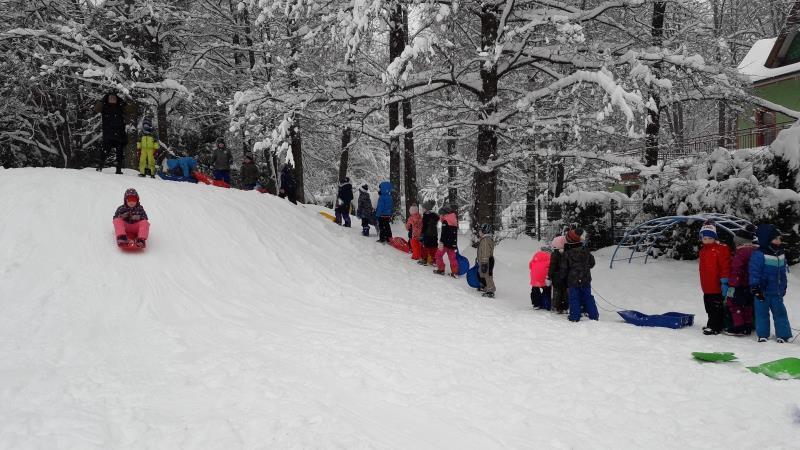 Dysponujemy pięknym ogrodem i placem zabaw z licznymi urządzeniami rekreacyjnymi: bujaki, huśtawki, karuzele, zjeżdżalnie, drewniane konstrukcje, gry podwórkowe,dobrze wyposażone piaskownice oraz "własną górkę" do zimowych szaleństw.