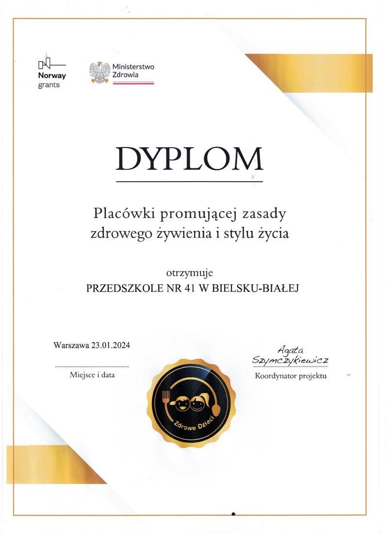 🏅 Dyplom Ministerstwa Zdrowia za promocję zdrowego stylu życia