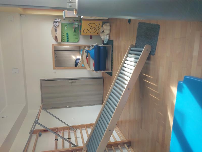 Wszystkie dzieci mające zajęcia specjalistyczne posiadają możliwość korzystania z sali terapeutycznej i gabinetu logopedycznego w nowej części przedszkola.