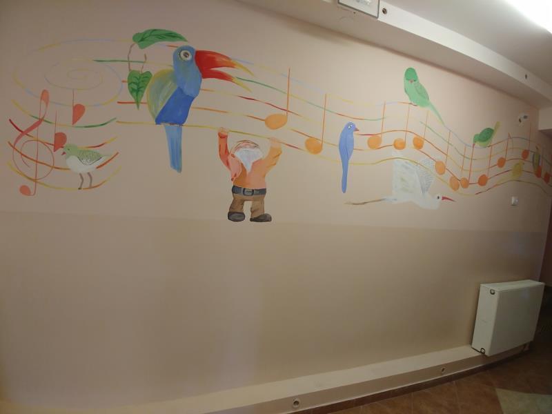 Przedszkole zostało rozbudowane oraz całkowicie wyremontowane w ramach projektu Europejskiego Funduszu Społecznego „Radosne Przedszkolaki