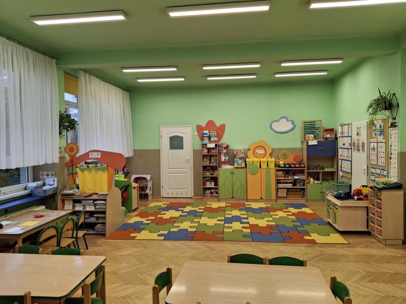 Posiadamy przestronne sale dydaktyczne oraz salkę do zajęć integracji sensorycznej. Przy każdej sali znajduje się zmodernizowany kompleks higieniczno-sanitarny. Przedszkole posiada bardzo dobre warunki lokalowe.