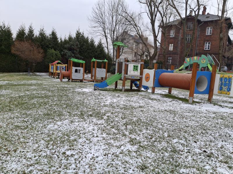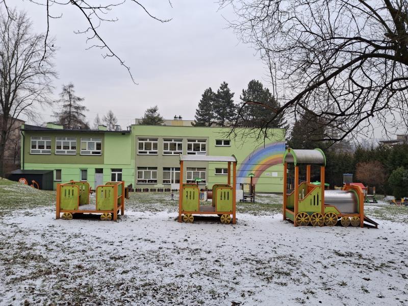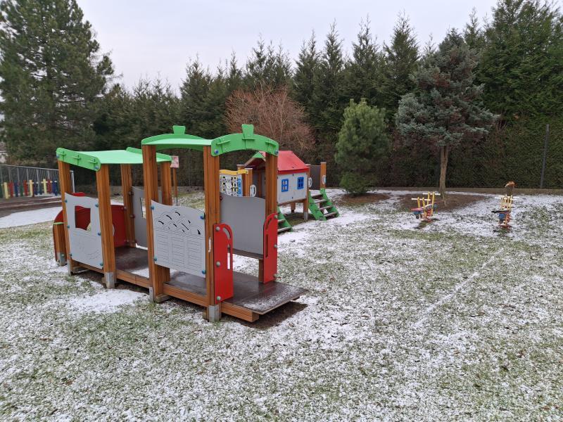 Budynek otoczony jest dużym, funkcjonalnym ogrodem wyposażonym w nowoczesne, atestowane urządzenia, który zapewnia dzieciom bezpieczeństwo i radość z zabaw na powietrzu.