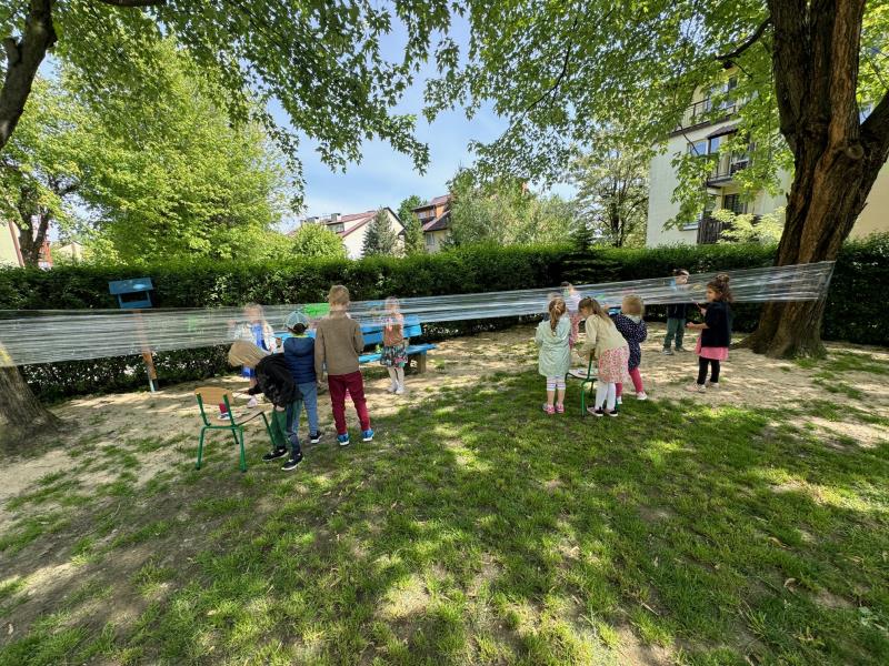 - mamy dostęp do ogródka umożliwiającego swobodną ekspresję ruchową, wyposażonego w urządzenia ogrodowe,